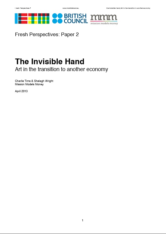 A very insightful reading is a “Fresh Perspectives Paper 2” publication entitled “The Invisible Hand: Art in the Transition to Another Economy”, by Charlie Tims & Shelagh Wright, published by IETM (International Network for Contemporary Performing Arts), British Council & Mission Models Money (2013).